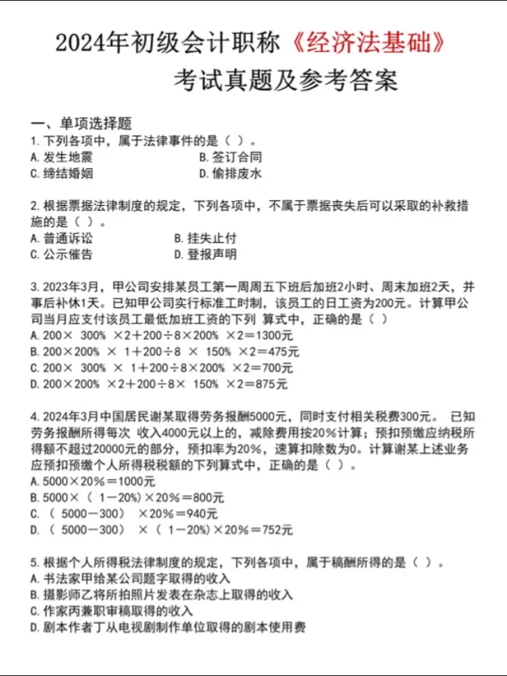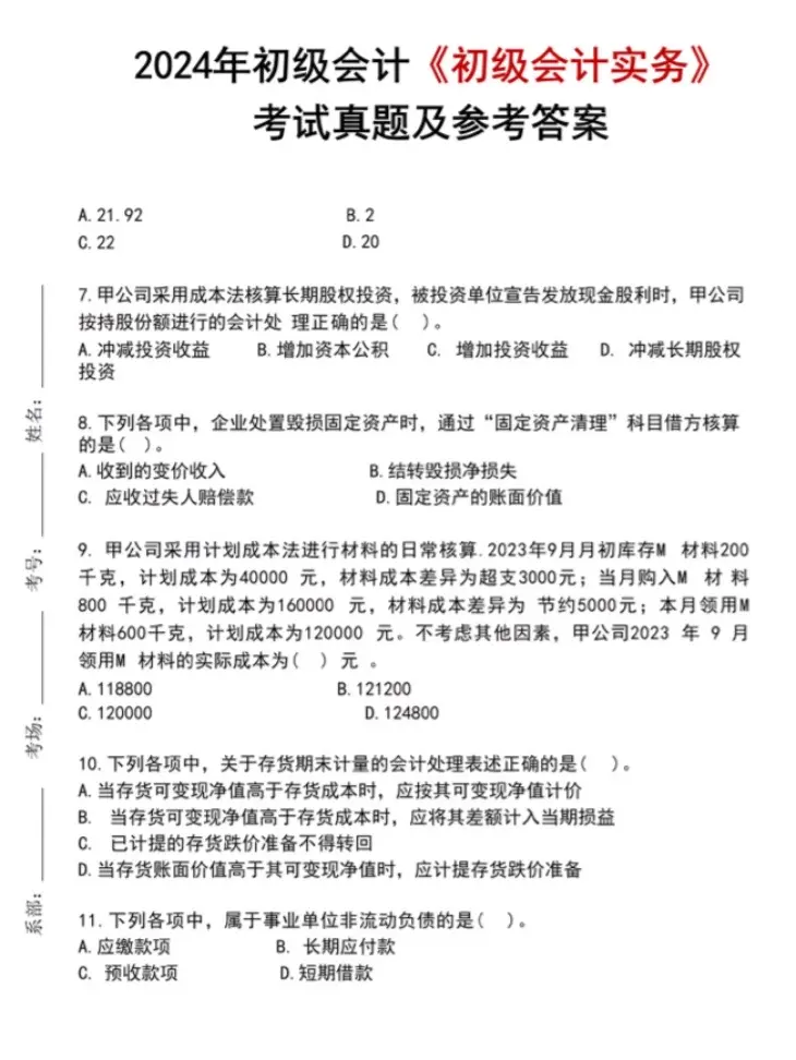 提醒一下,初级会计历年真题(完整版)历年初级会计考试就这些内容,今年不会变到哪去!