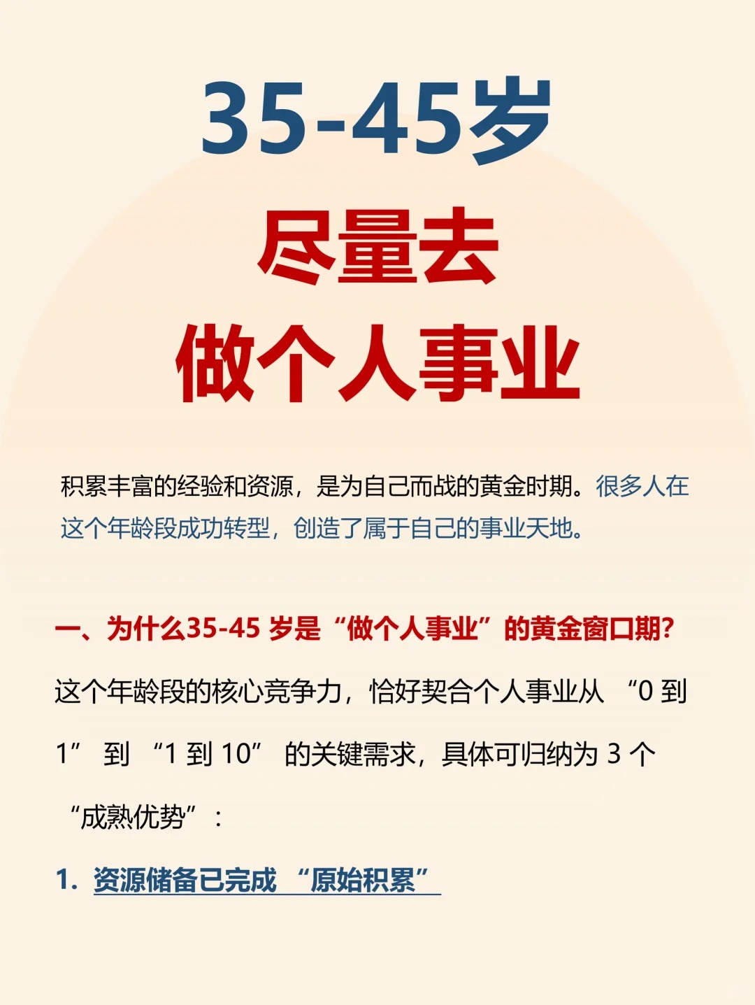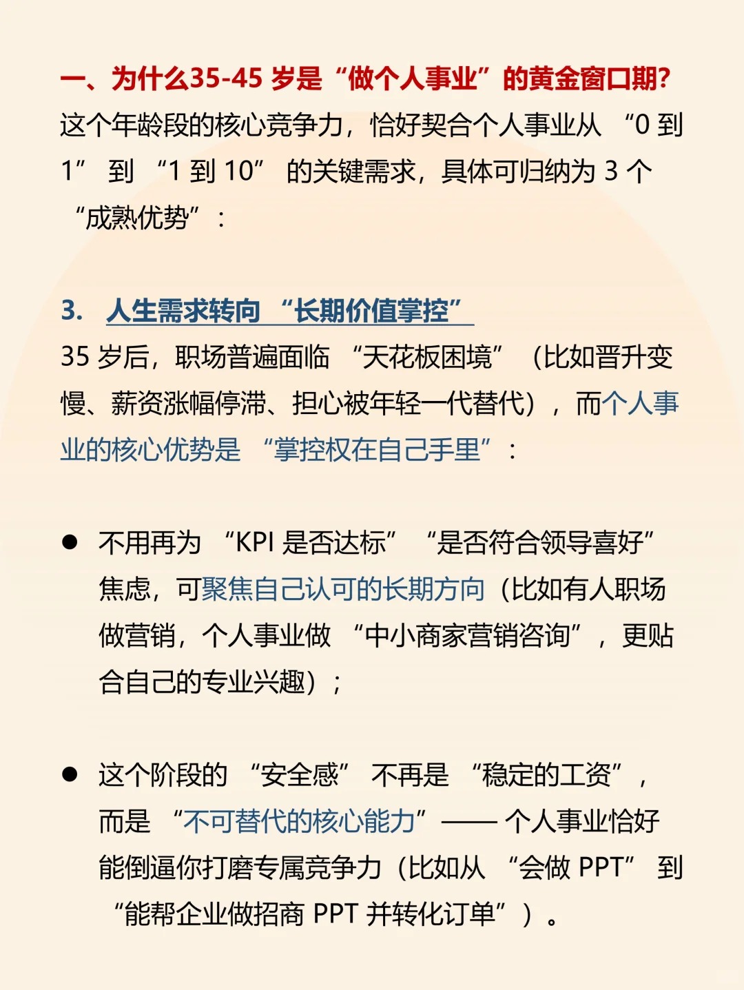 建议35-45岁,尽量去做个人事业