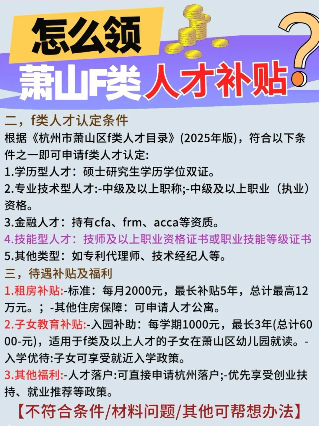 怎么领萧山f类人才补贴?先要符合认定条件。