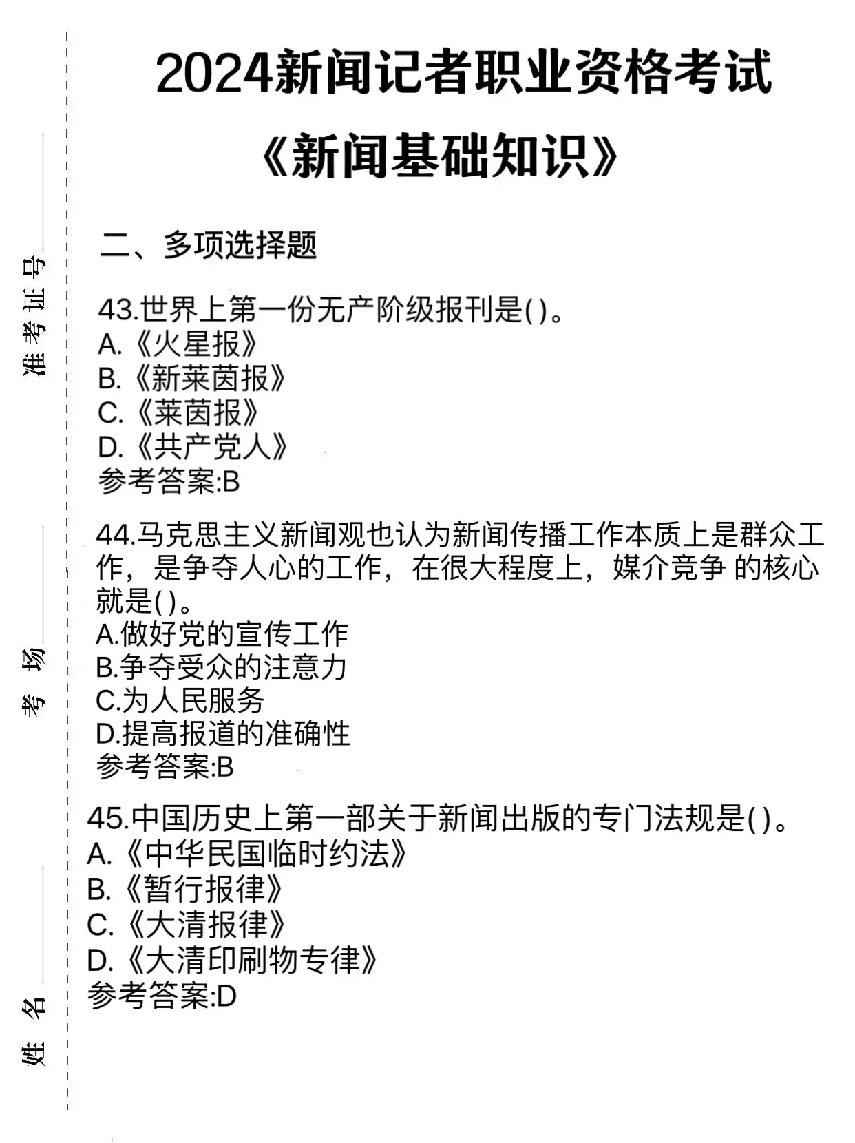 记者资格考试2000蜜题,来一个拉一个