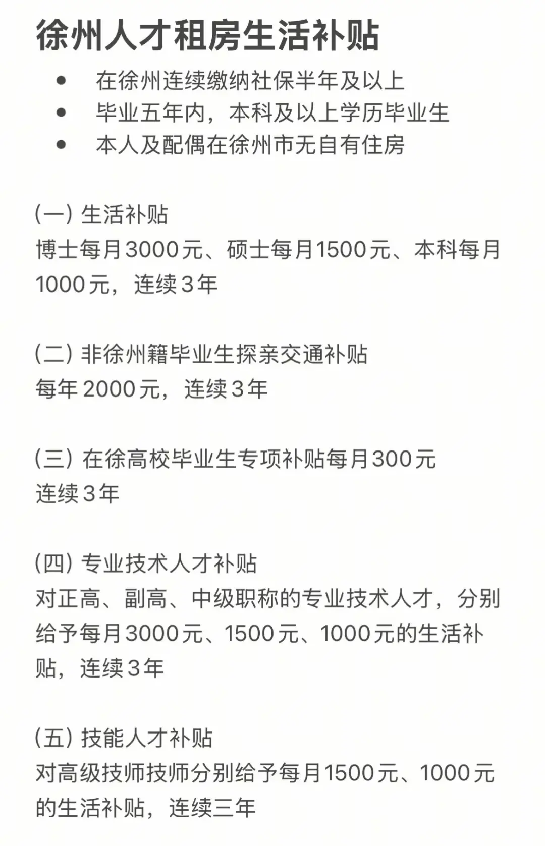徐州人才租房补贴政策
