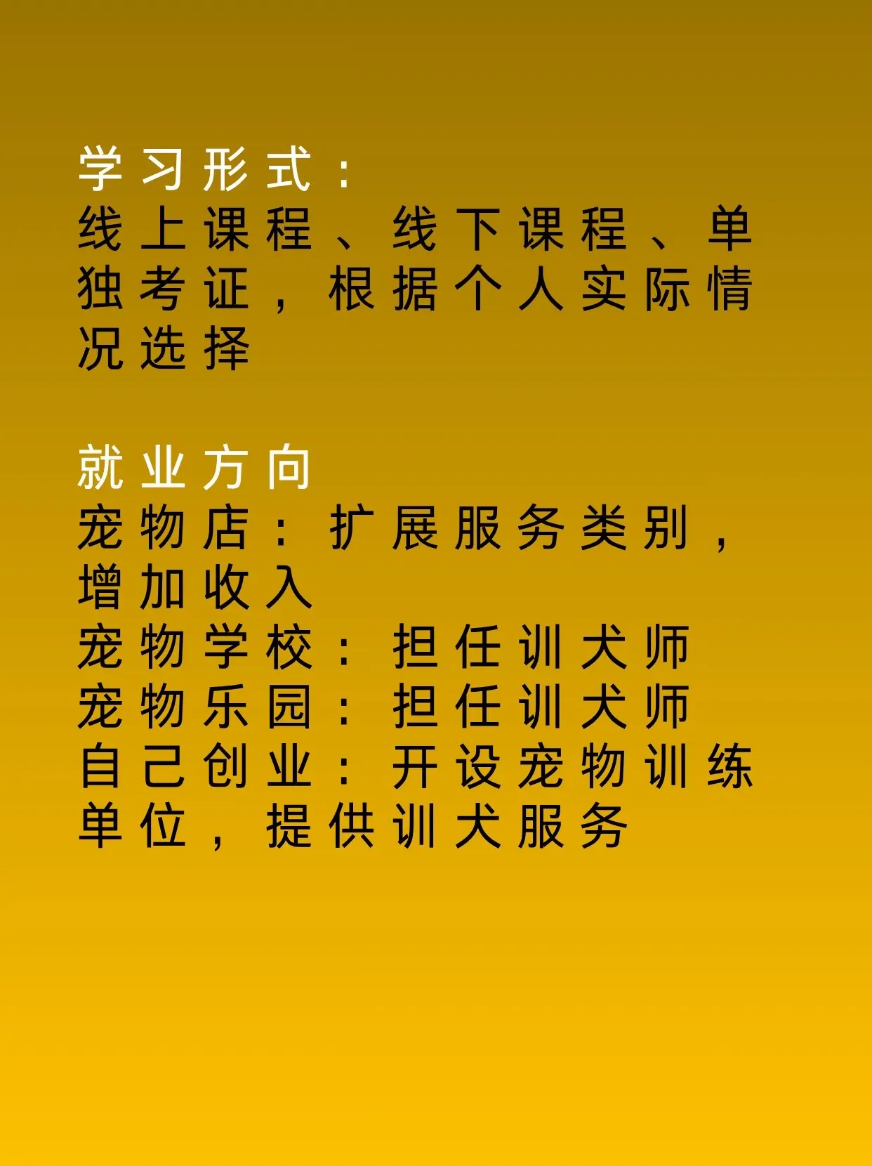 训犬师考证。宠物经济越来越火,所以将来会越来越合规!