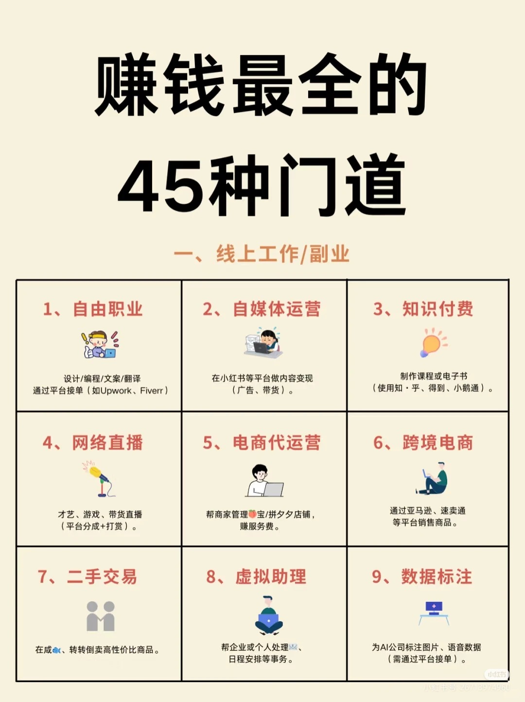 2025年,选择靠谱且赚钱的副业可以考虑以下几个方向:1. 在线教育与辅导网络课程:如果你在某个领域有专长,可以创建在线课程,平台如Udemy、Coursera等。一对一辅导:提供学科辅导或技能培训,...