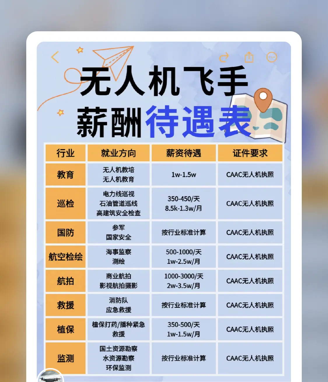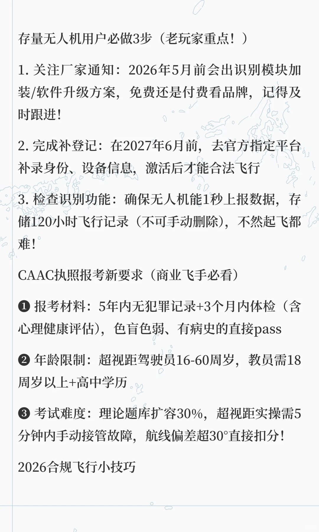 无人机驾驶证主要分为视距内驾驶员、超视距驾驶员和教员证,不同类型的报考条件和费用有所不同,具体如下:报考条件视距内驾驶员:年满 16 周岁;具有初中或以上文化程度;近三年内无刑事犯罪记录;矫正视力 1...