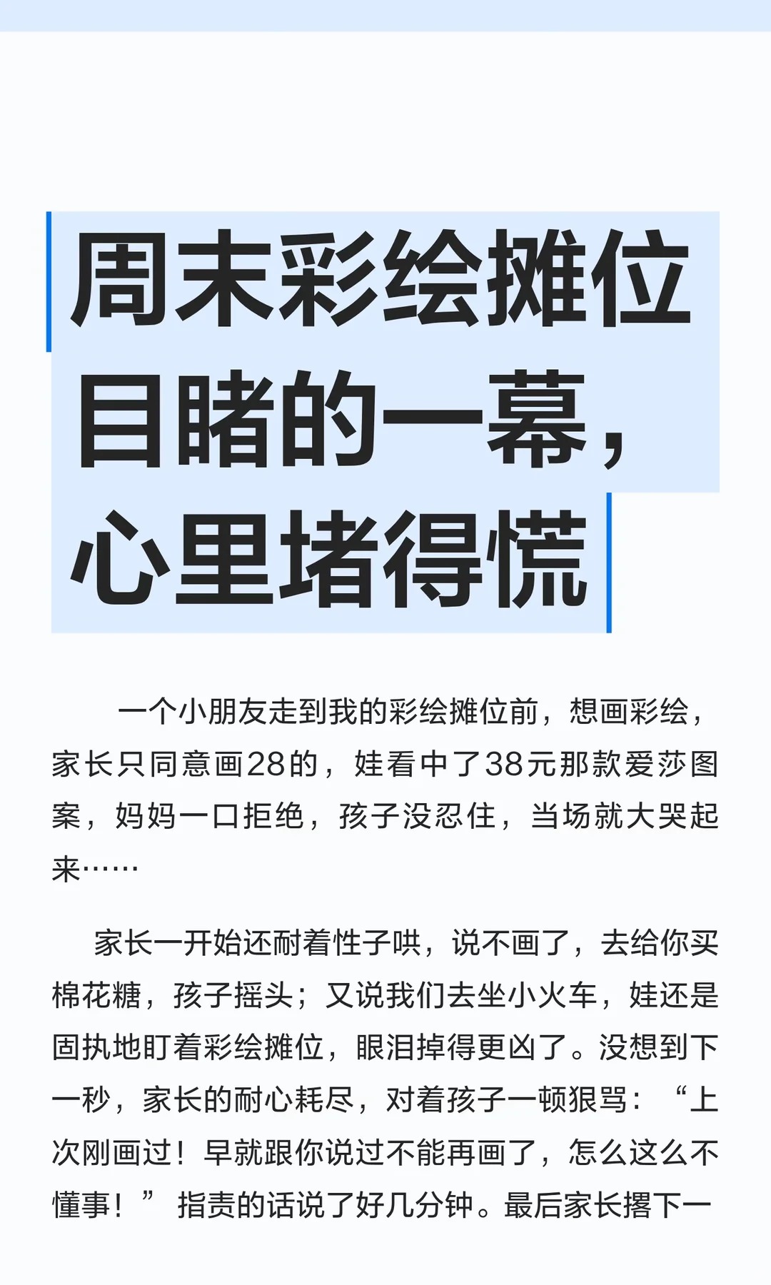 周末彩绘摊位目睹的一幕,心里堵得慌