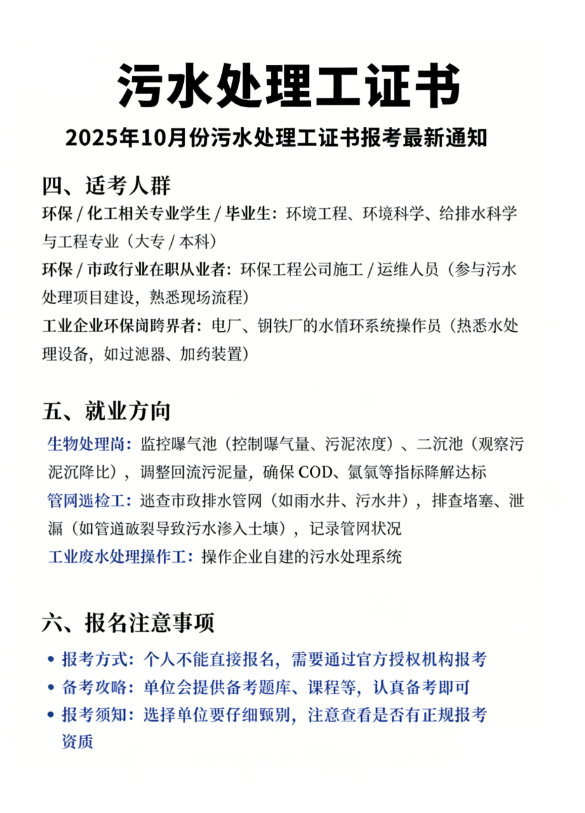 污水处理工证书怎么考?怎么报名?