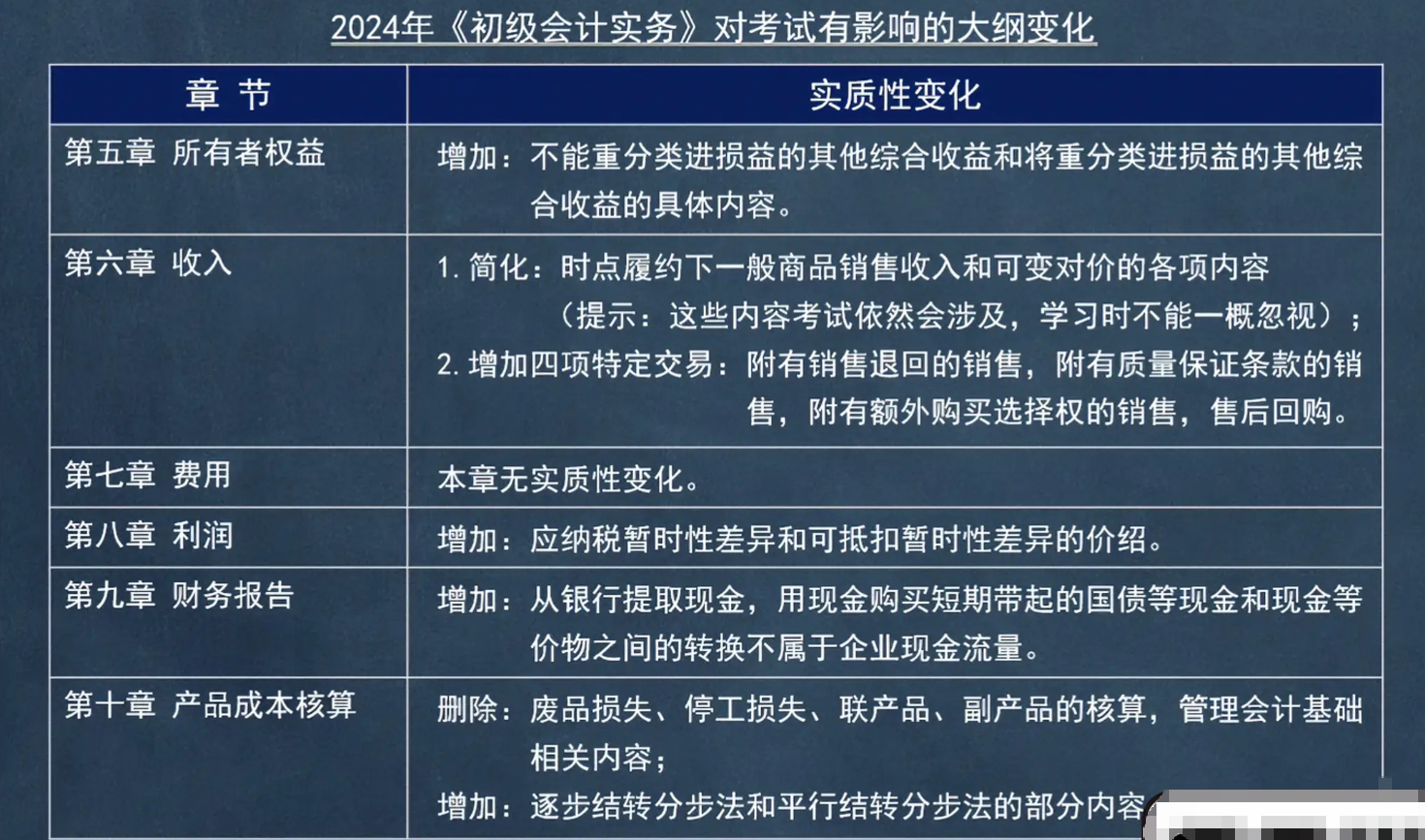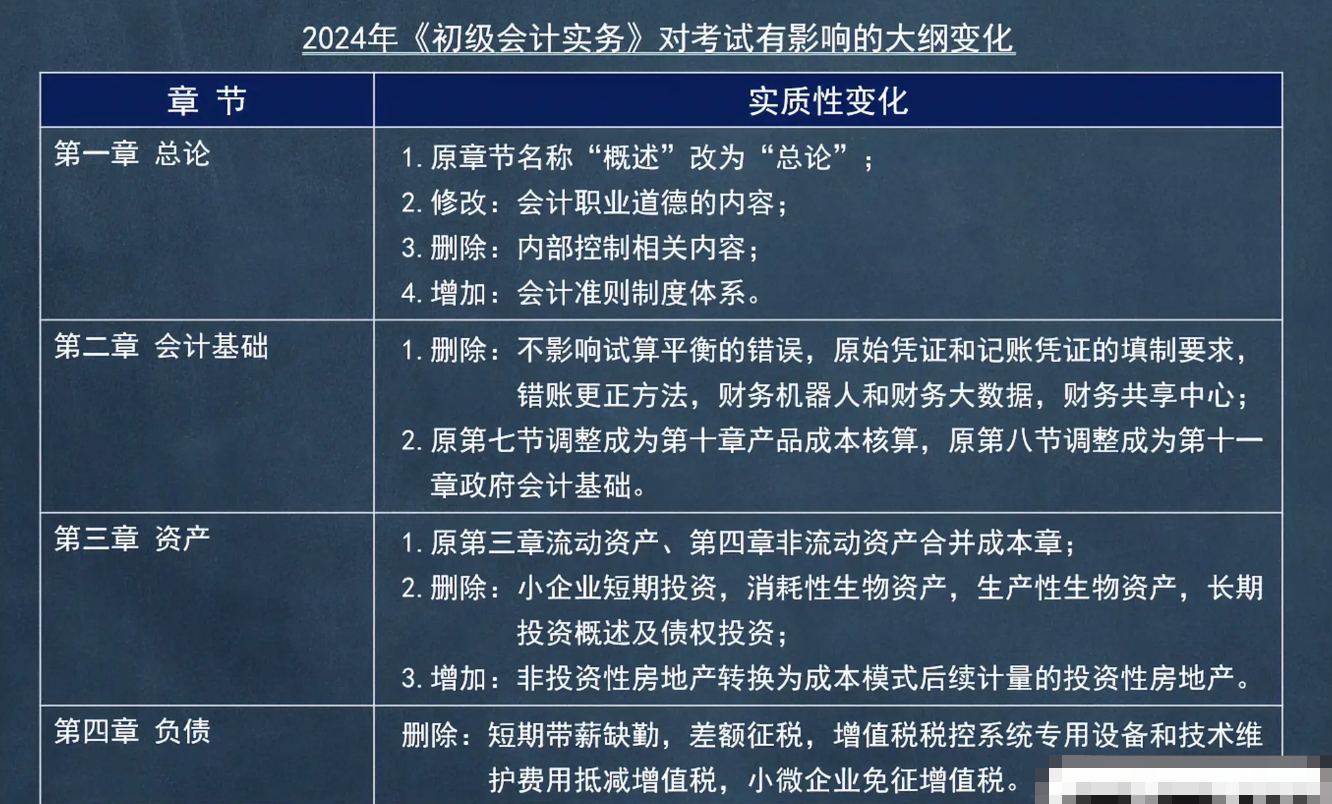 2024年初级会计双科章节变化。