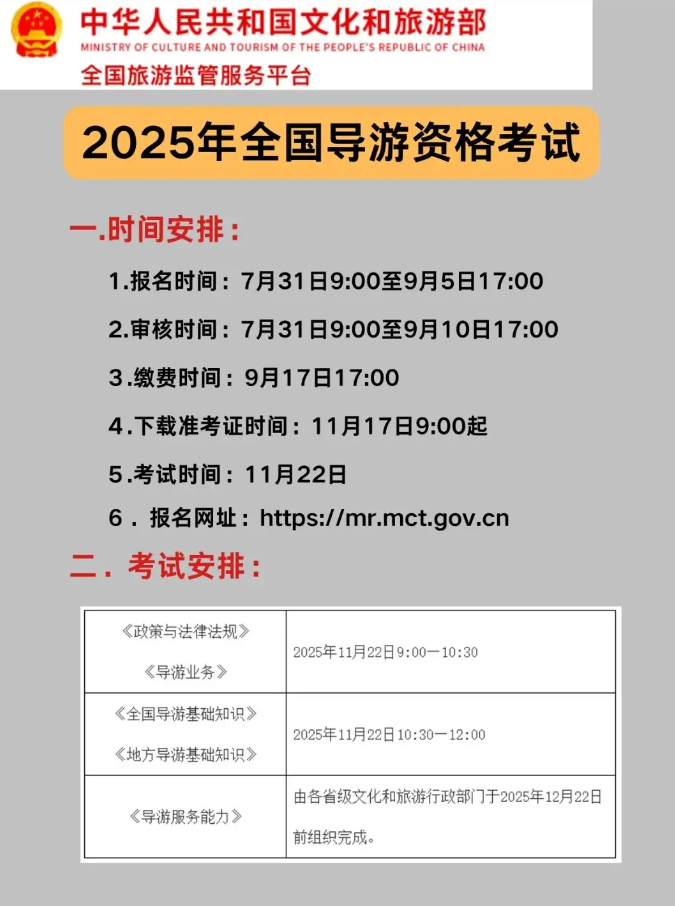 导游证考试时间。导游证考试即将来临,没有把握的抓紧时间啦!!!