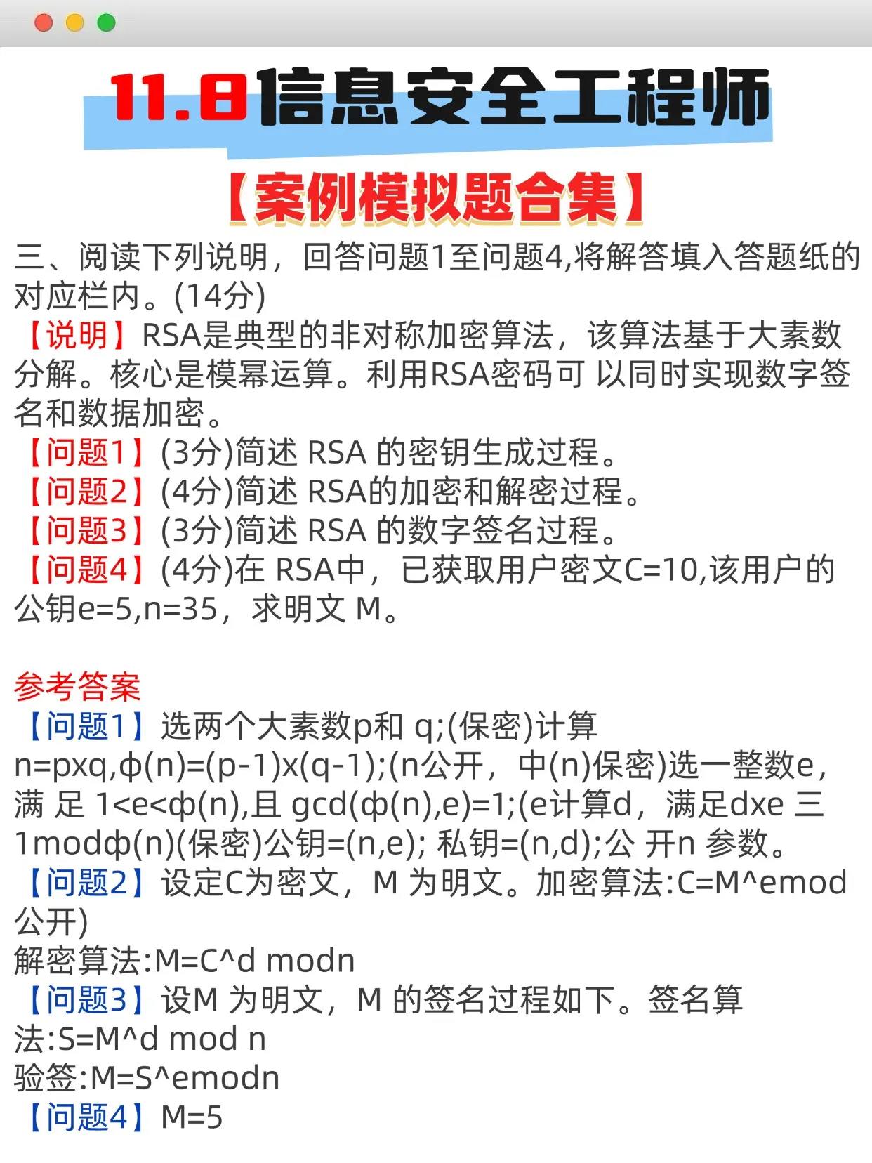 软考倒计时4天!信安案例题合集🔥。