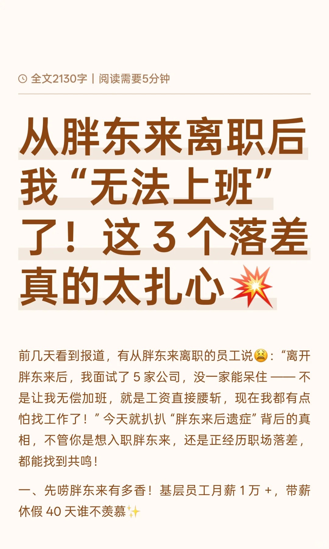 从胖东来离职后 “无法上班” 了!
