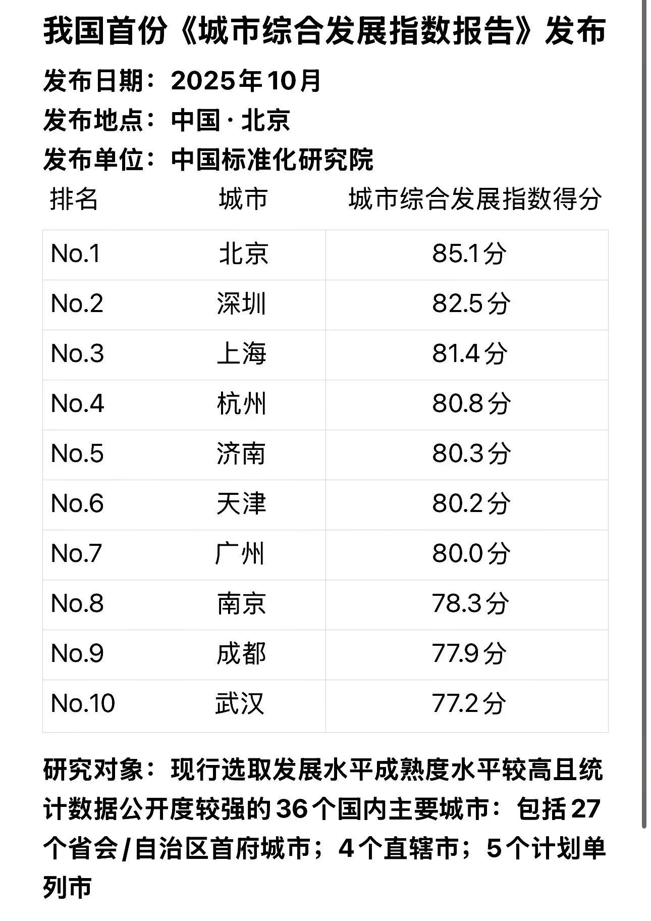 我国首份城市综排榜单发布,这可能是当今为止最权威的榜单数据