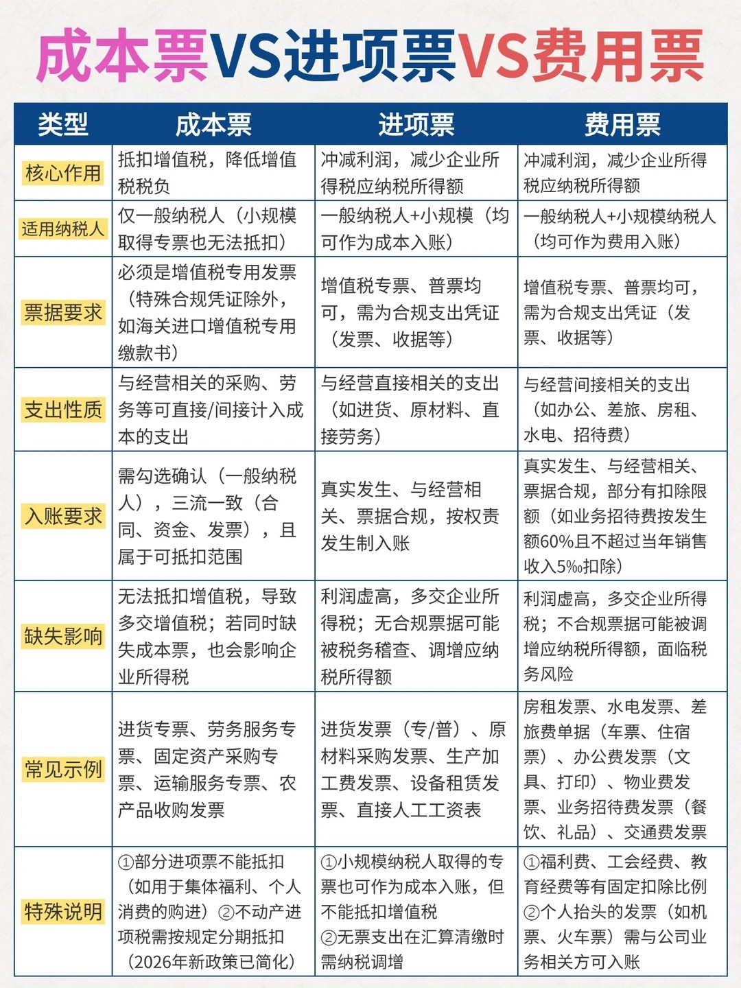 成本票🆚进项票🆚费用票三者的关键区别