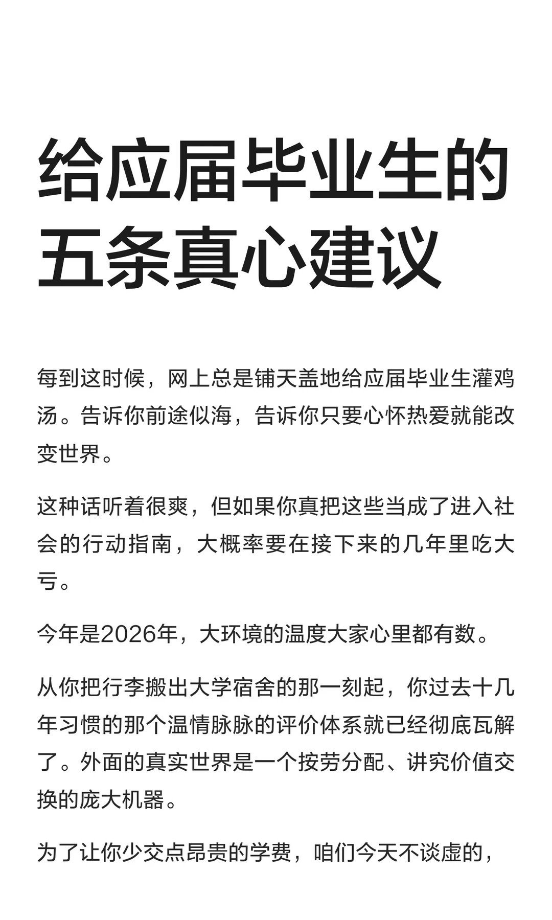 给应届毕业生的五条真心建议