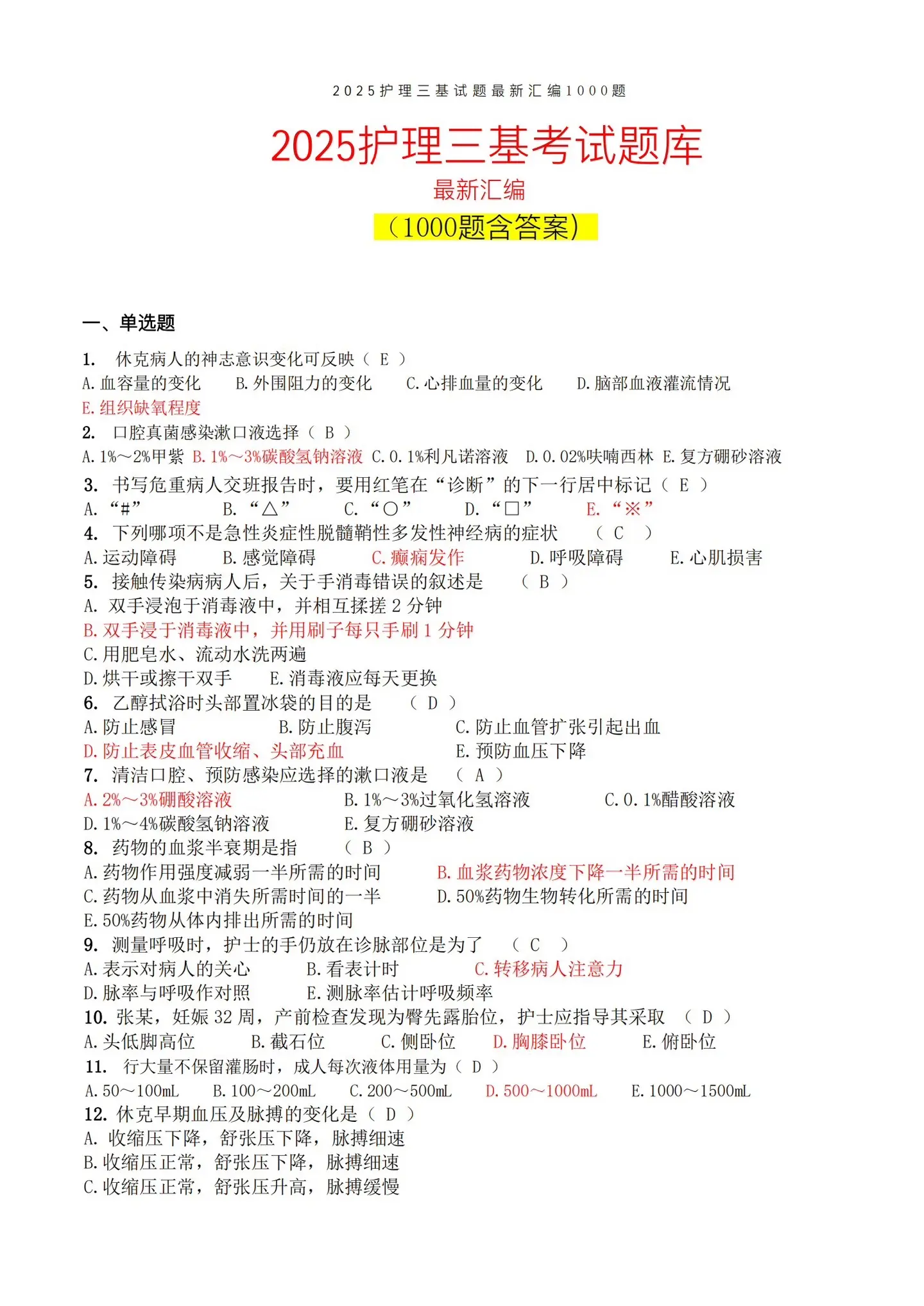 2025最新护理三基1000题。
