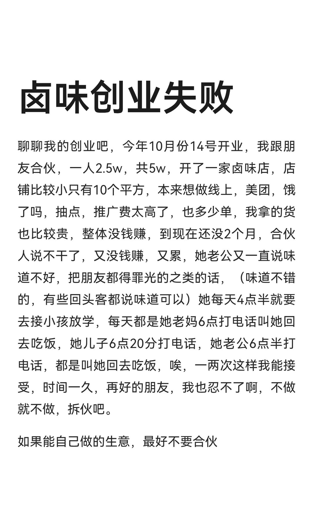 卤味创业失败