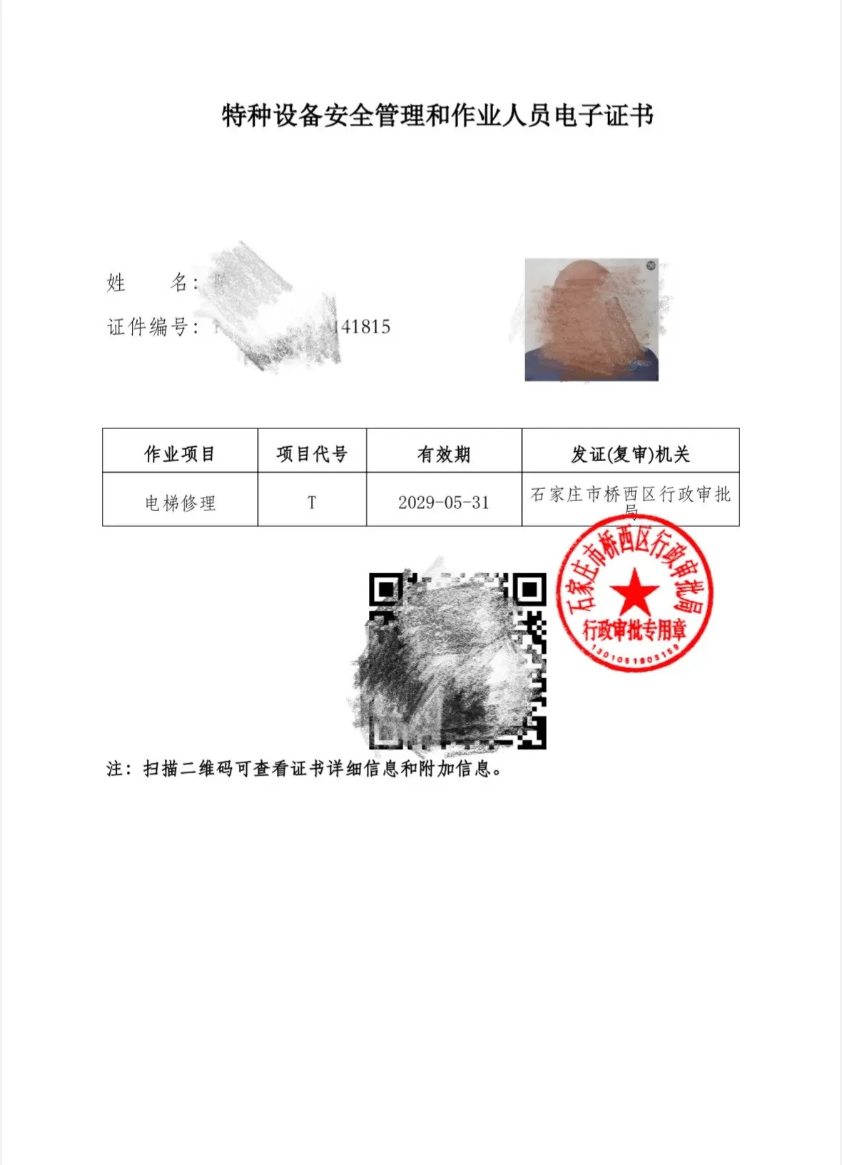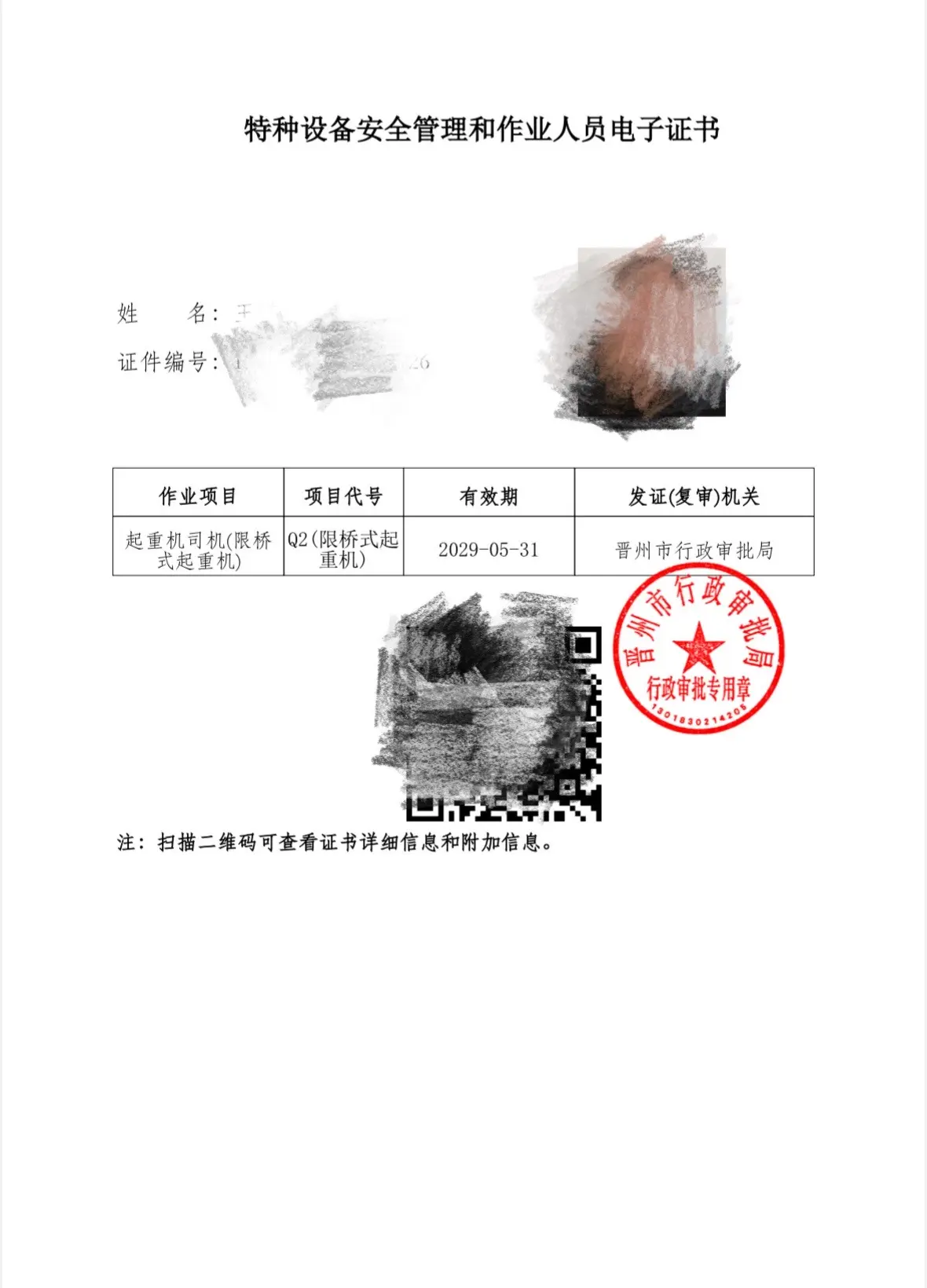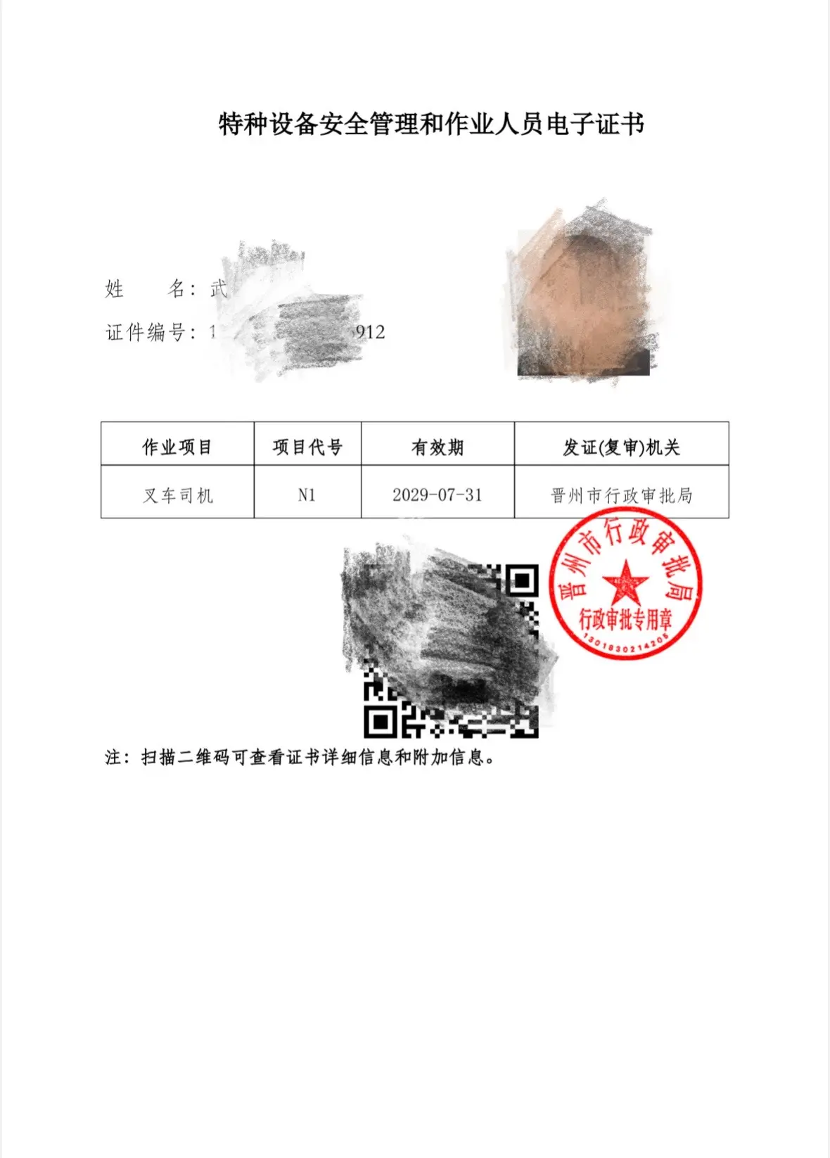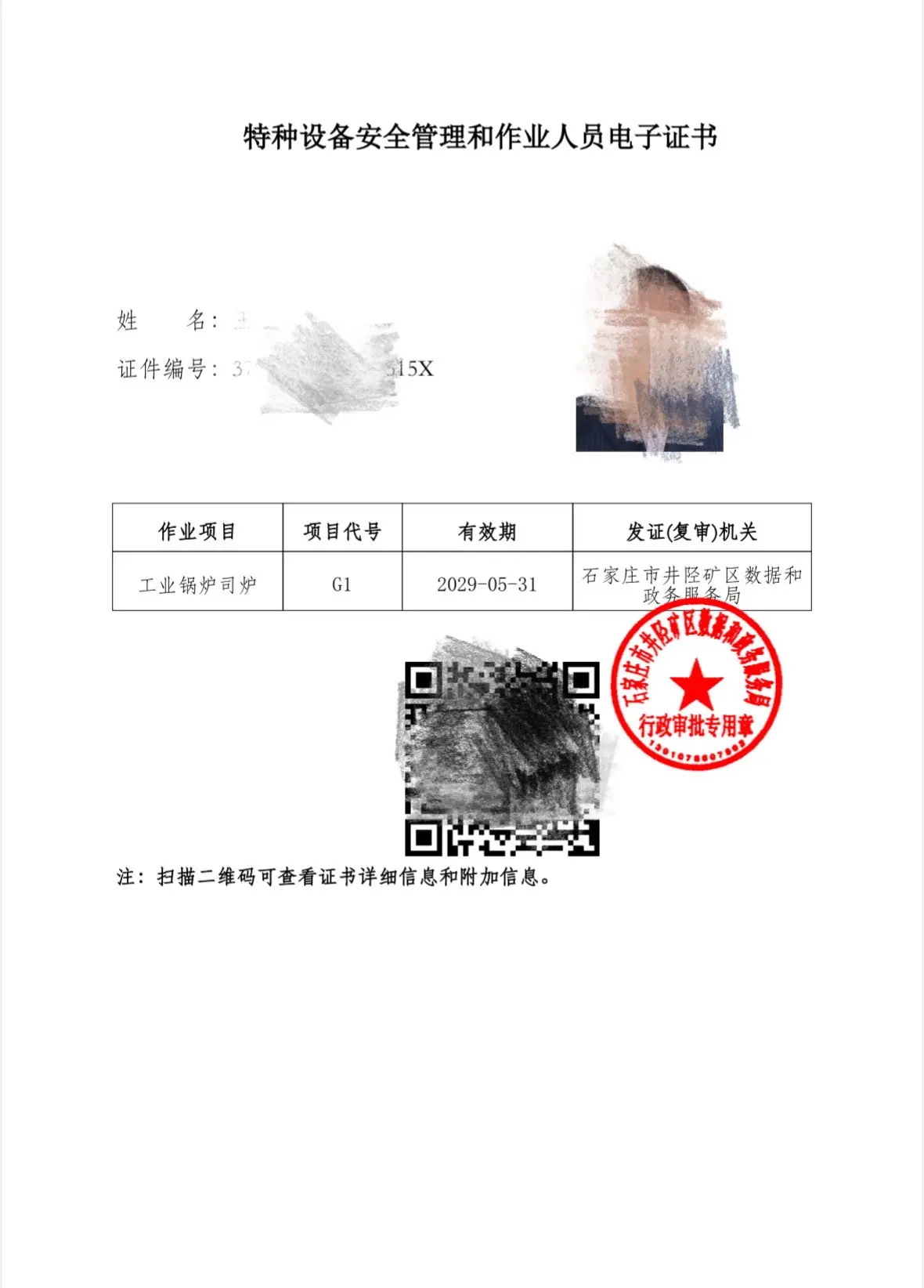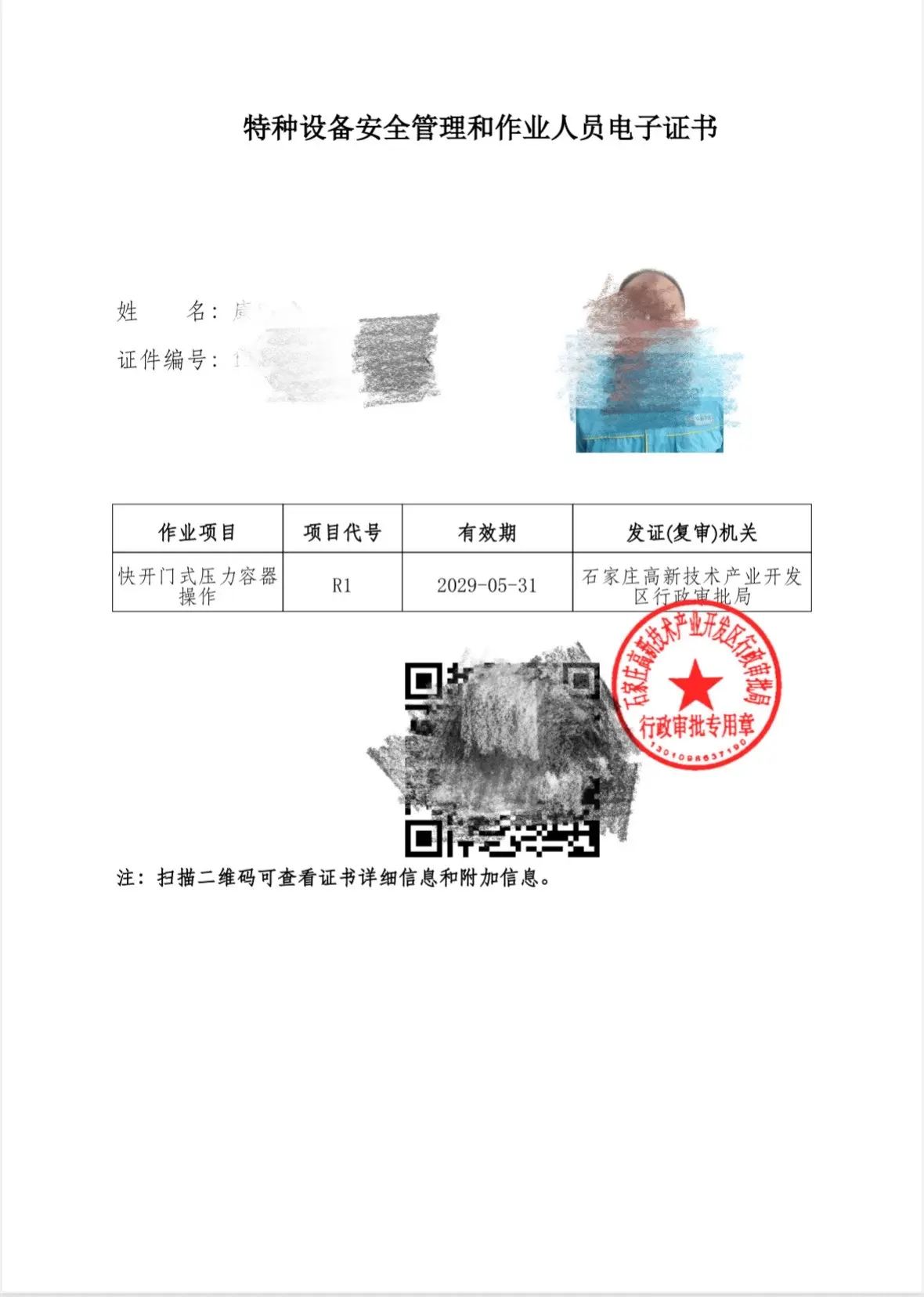 特种设备安全管理和作业人员证。