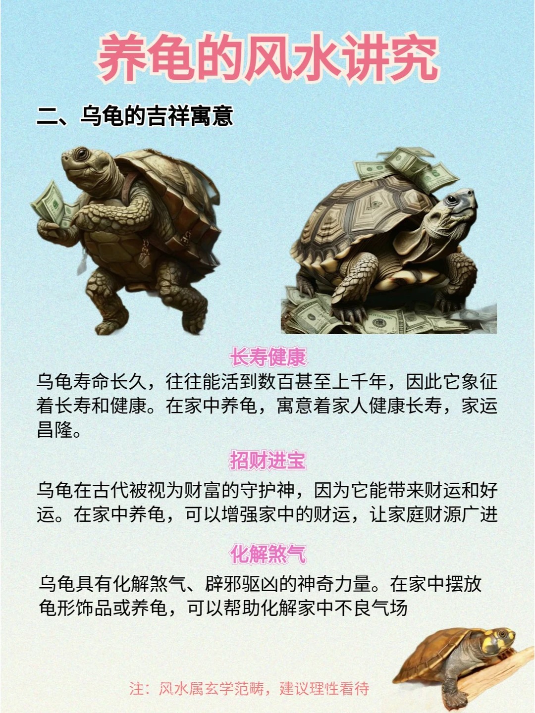 龟知识分享:养龟的风水寓意